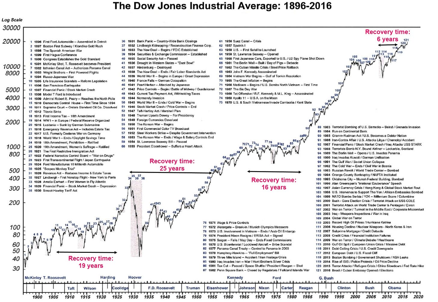 There’s this famous chart of the 120 years of the Dow Jones, where you see all the major political events listed. The stock market still went up long-term. And if you invest in wonderful companies, you have to worry even less.