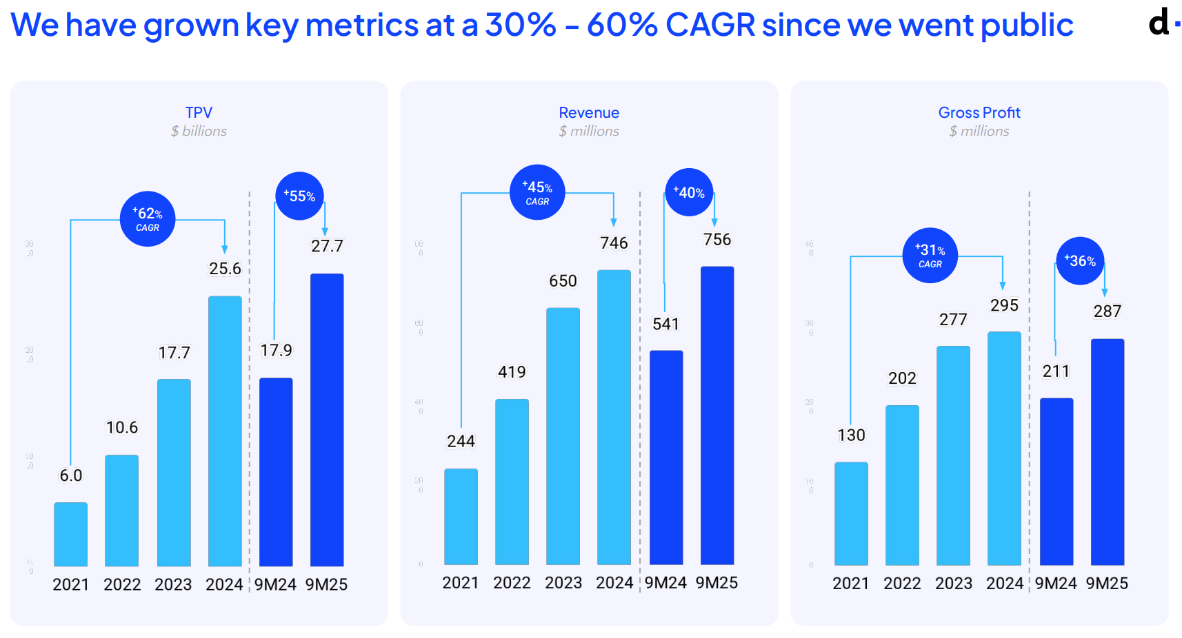 That’s how dLocal has been able to grow Total Payment Volume (TPV), revenues, and gross profits by over 30% annually since they went public in 2021. You will notice that TPV is growing faster than revenues, which is growing faster than gross profits. And that’s one of the reasons why the market is worried.