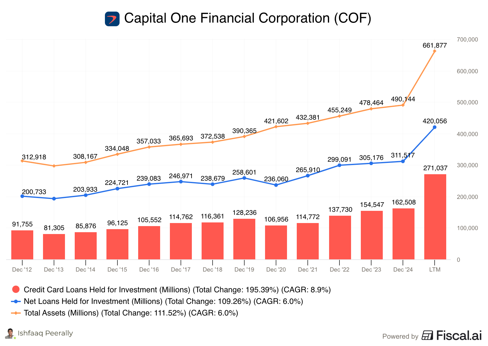 For example, Capital One ( COF 0.00%↑), recently became the 5th largest bank in the US after the acquisition of Discover Financial, one of the issuers/networks. Now the bank has 65% of its loan as credit card loans with 73% of revenues from credit cards.