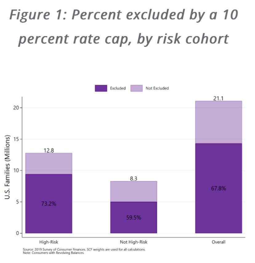 As per a 2019 Survey of Consumer Finances, 67% of American families with revolving balances are at risk of being excluded from credit cards, if they are capped at 10%. Now with even higher interest rates, the number of people excluded will be significantly higher.
